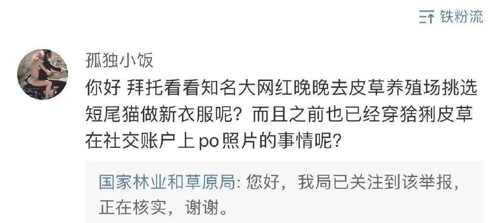 本身大家对穿动物皮草,尤其是珍稀动物皮草,就存在争议。因为动物来源是否合法,制造过程是否合理,都一直有待商榷。人工仿制皮草、人工养殖动物皮草、珍稀动物皮草…都是有区别的,不能一概而论。