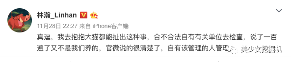让不少粉丝误以为她和林瀚私养了猞猁。还在评论里告诉他们,这是保护动物,不能养的。