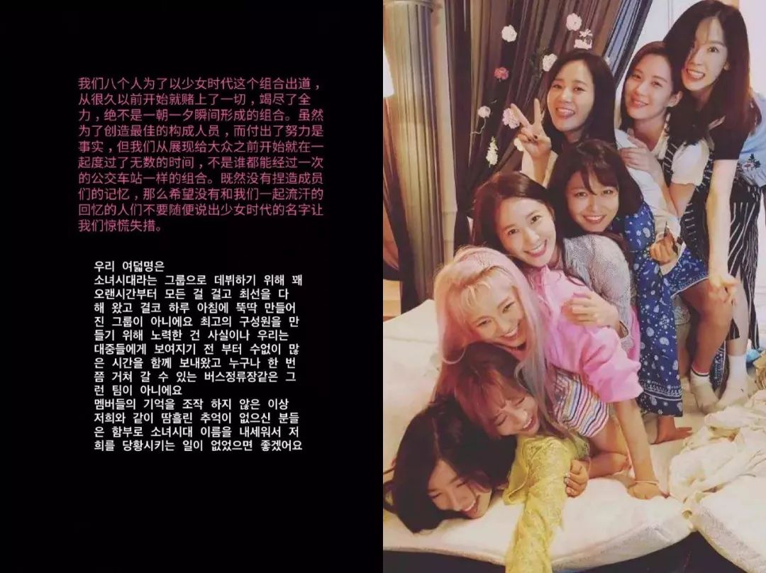 ▲泰妍的声明和少女时代组合的合影