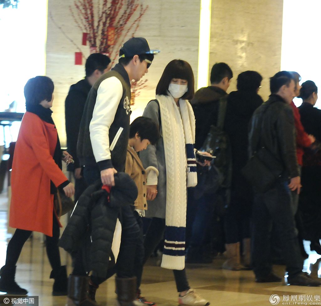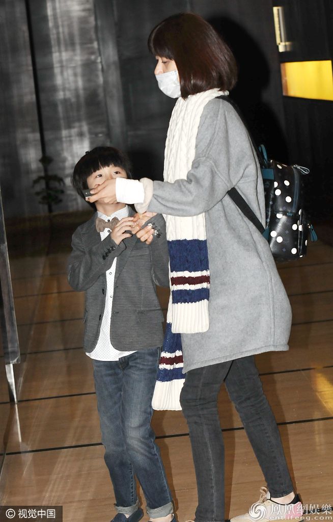 寇静带儿子天天低调亮相。 图片来源:朱仁/视觉中国