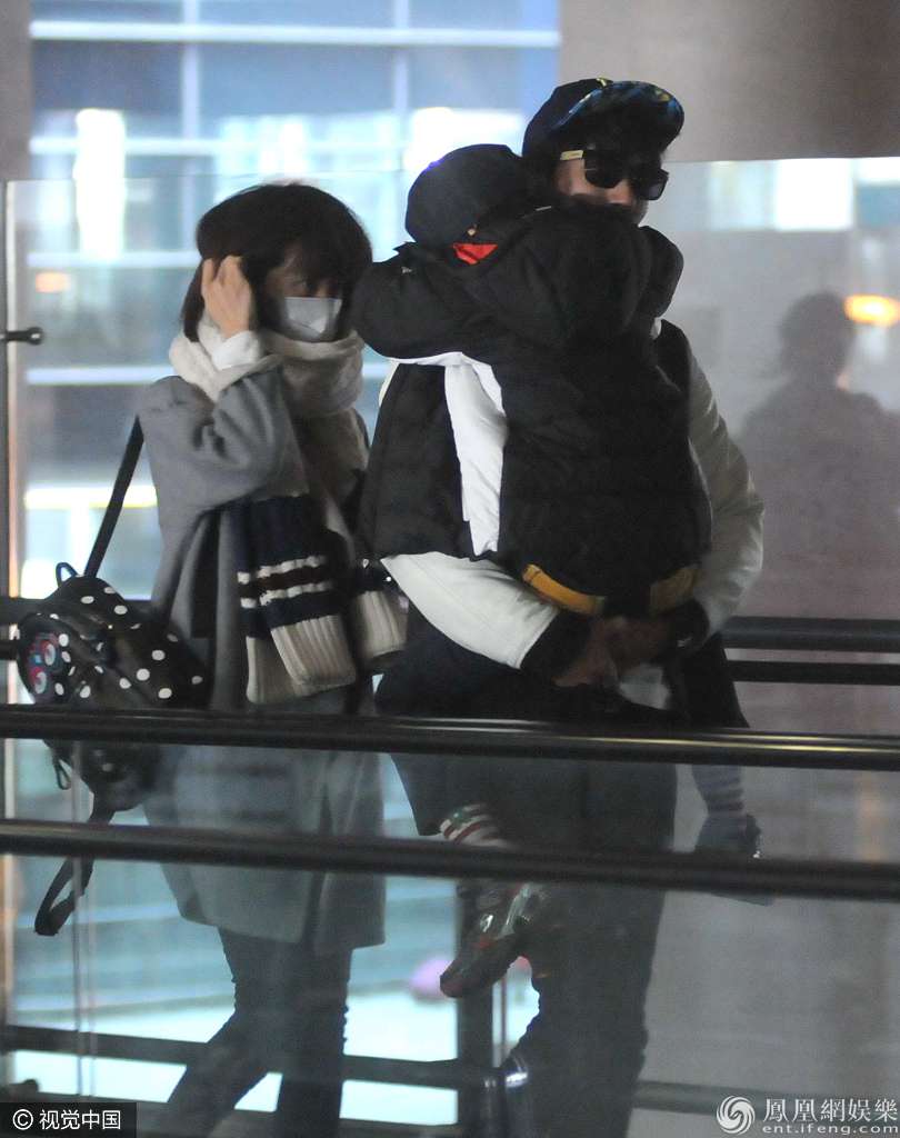 张亮、寇静、天天一家三口现身机场。 图片来源:朱仁/视觉中国
