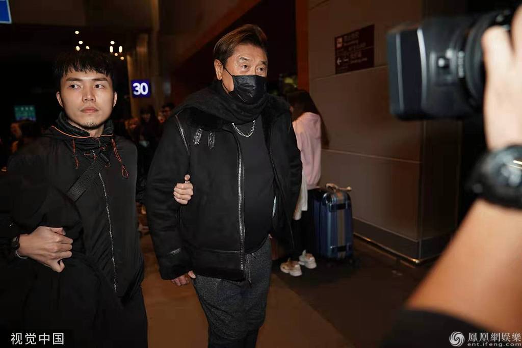 高爸爸身穿黑色外套口罩遮面,面容难掩憔悴,获助理一路小心搀扶。