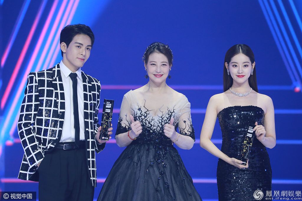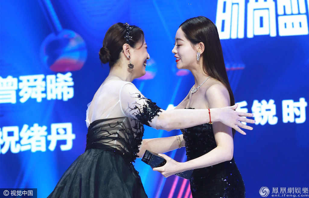 2019年11月28日,北京,周海媚、祝绪丹、陶虹、黄圣依、曾舜晞等明星亮相2019今日头条时尚盛典。陶虹穿深V长裙优雅妩媚尽显风情。黄圣依高扎丸子头穿抹胸羽毛裙秀香肩,宛若仙女。周海媚、祝绪丹《倚天》两代“周芷若”同框拥抱;曾舜晞青春帅气。 图片来源:陆平/视觉