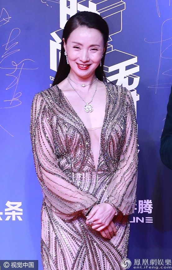 陶虹穿深V长裙尽显风情。 图片来源:啊/视觉中国