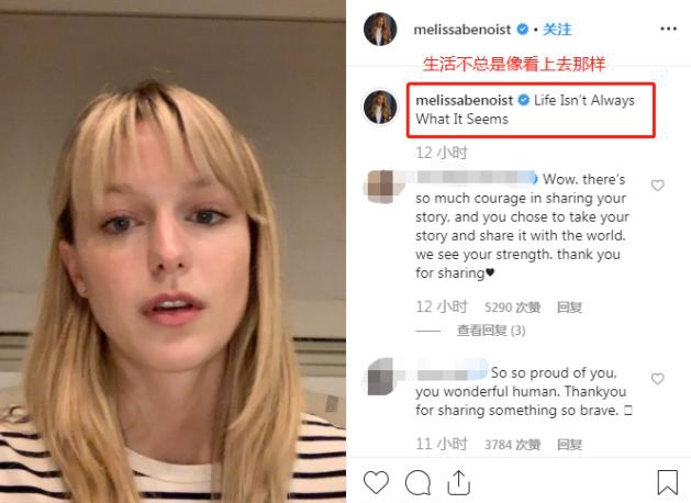 11月28号凌晨,饰演"女超人"的演员Melissa Benoist(梅利莎·拜诺伊斯特)在自己的社交账号上放出一段视频,时长足有14分半,同时她的配文是"生活不总是像看上去那样",仿佛要在视频里揭开自己生活的另一面。