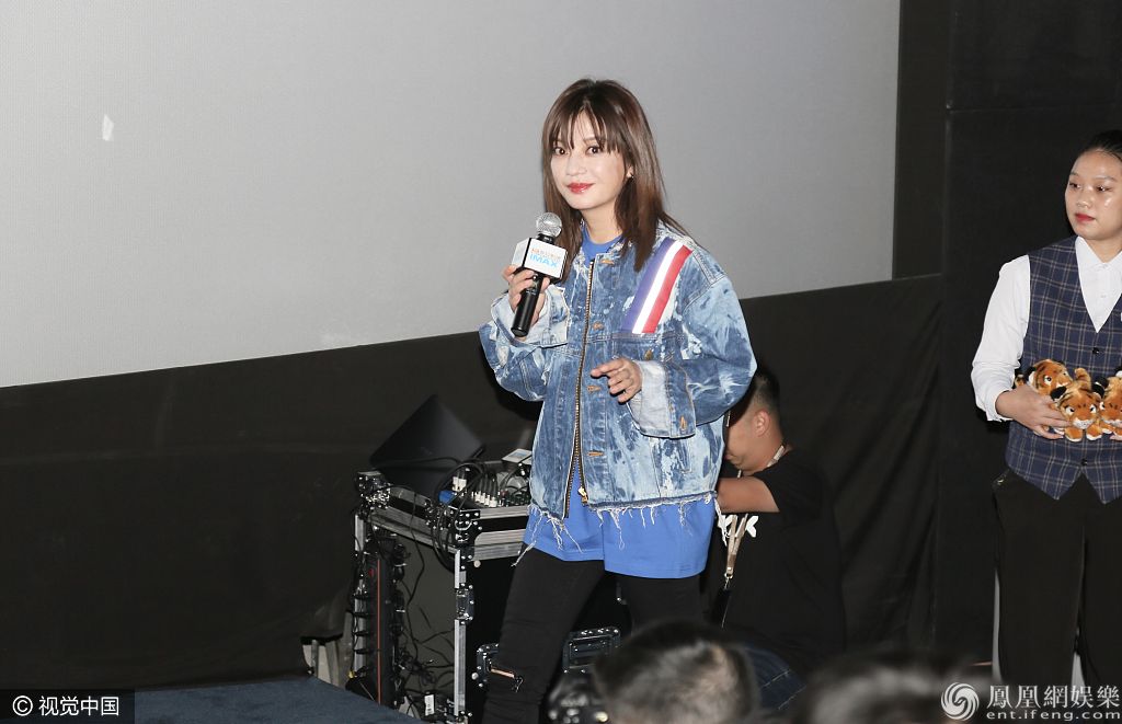 2019年11月28日,广州,赵薇亮相新片《两只老虎》路演。作为监制兼主演的赵薇长发披肩,身着牛仔外套,看起来状态极佳。她与影厅里近一半影迷会成员热情互动,现场不仅回答粉丝提问,还大送老虎公仔,更放豪言:“希望大家多多支持,因为比大多数国产片好看。” 图片来源:晓闻/视觉