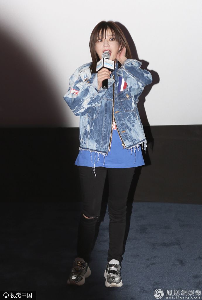 作为监制兼主演的赵薇长发披肩,身着牛仔外套,看起来状态极佳。 图片来源:晓闻/视觉中国