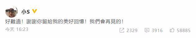 小S在听闻高以翔突逝的消息后则表示“好难过!谢谢你留给我的美好回忆!我们会再见的!”