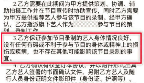 更扎眼的是,要求艺人保证自己身体状况良好。