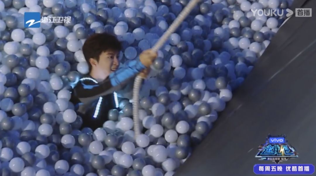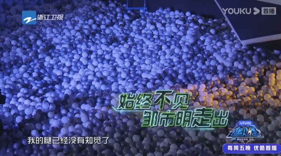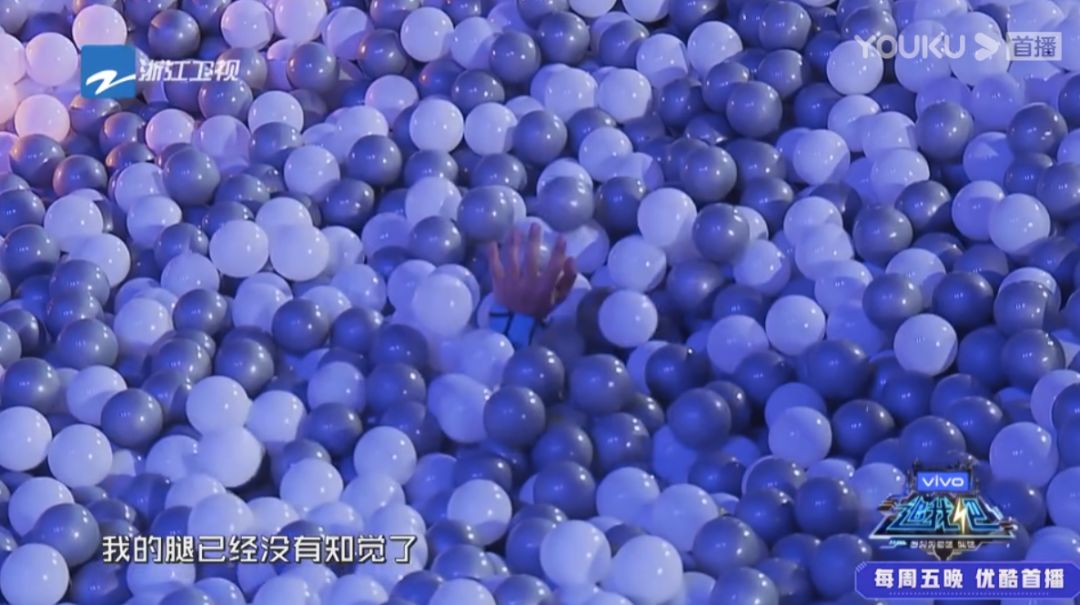 第二期,邹市明整个人被埋进了海洋球池子里,一开始还能露出头和手,大声呼救说“腿没知觉了”,