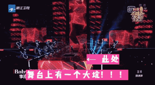 17-18跨年演唱会,还出现过舞台上黑黢黢一个大洞的情况,粉丝都心惊怕偶像掉下去(舞台上表演的又是陈伟霆)。