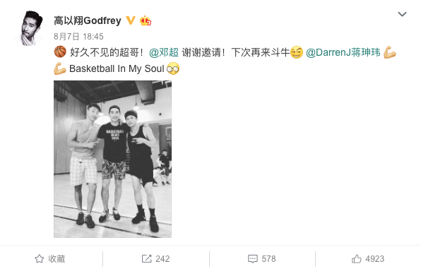 老实说看到热搜的第一时间,还觉得应该是误传,高以翔微博发最多的内容就是健身和打篮球,身体素质应该不错。