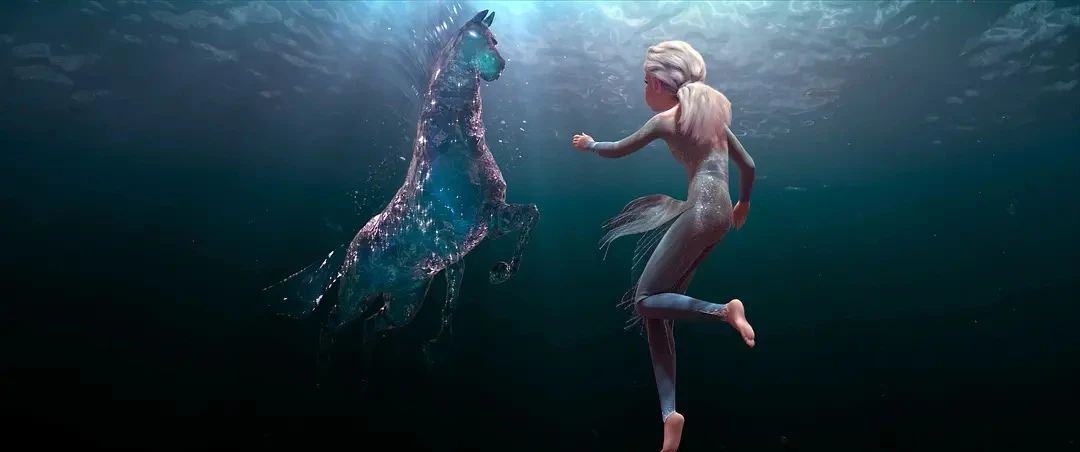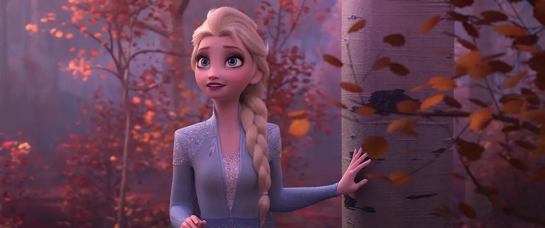 《冰雪奇缘2》的故事涉及到阿伦戴尔以外的世界,因此相应设计出更为宏大的世界观。魔法森林中的风灵、火灵、水灵、地灵形态各不相同,各具特色。相比前作,《冰雪奇缘2》在技术上十分硬核,除了大场面过关外,电影对细节的处理十分精细,人物的头发、服饰,动物的毛发质感极佳,被一众高呼“令人发指”。