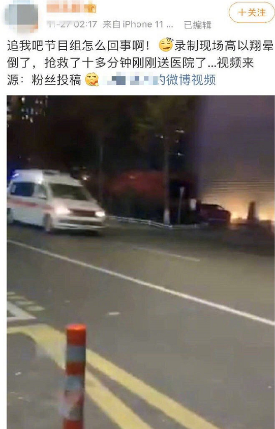 11月27日凌晨,有网友晒出救护车的照片,称高以翔在节目录制过程中晕倒抢救,随即有大V爆料称“人没了,猝死。”