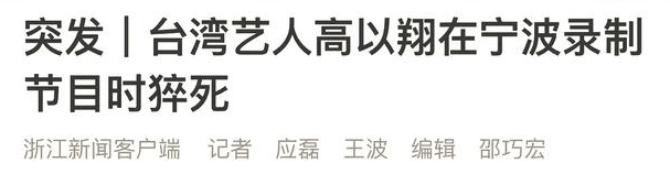 35岁台湾演员高以翔今早被曝在录制节目时晕倒,在经过现场抢救后送往医院进一步救治。,浙江卫视新闻客户端发文证实高以翔已经去世。