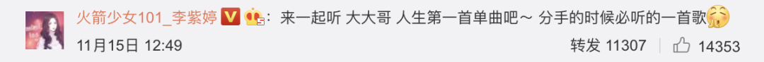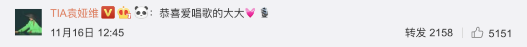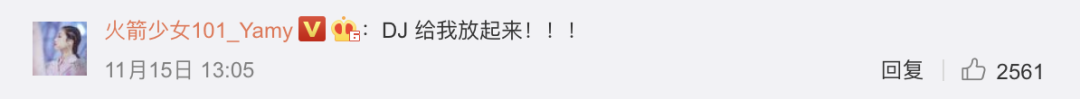 这条微博的转评多到涵盖小半个娱乐圈艺人,新生代女团有火箭少女的孟美岐、杨超越、Yamy、傅菁、Sunnee、李紫婷......