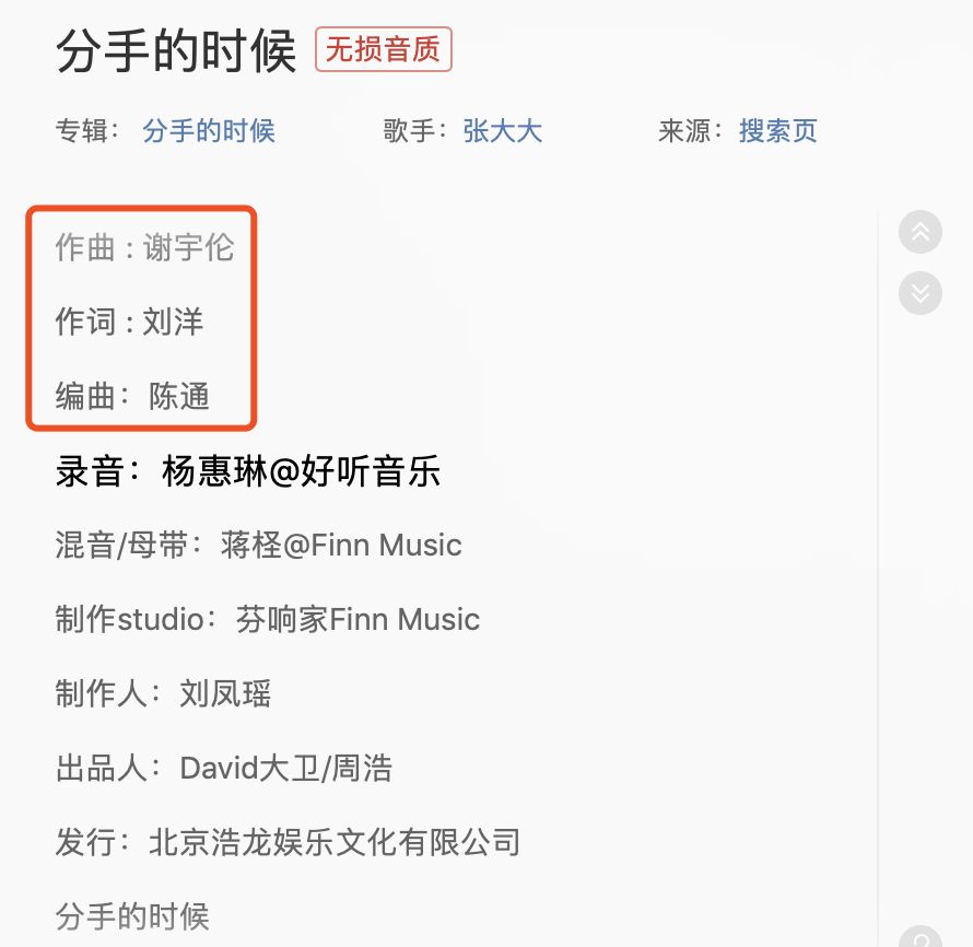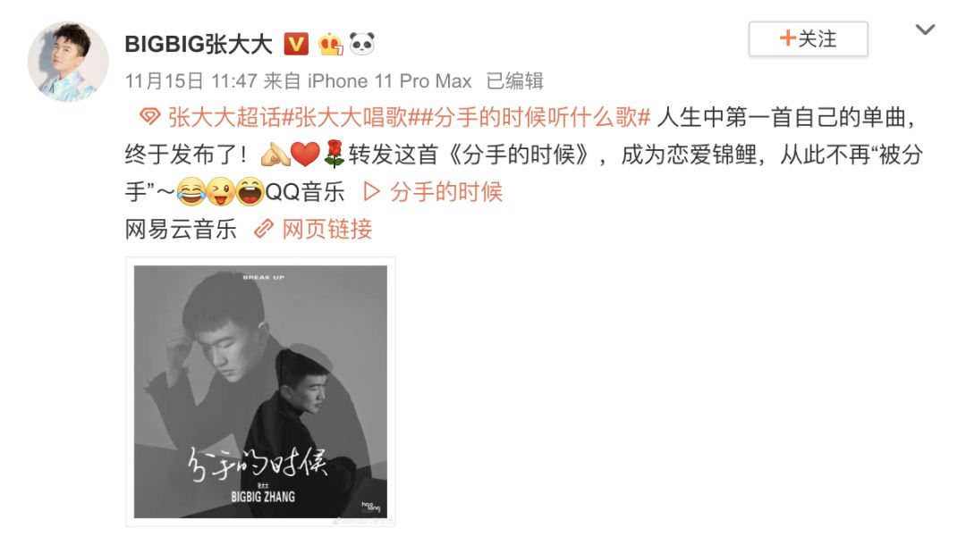 对,就是上面这首《分手的时候》 ,这是 主持人张大大人生中的第一首单曲。