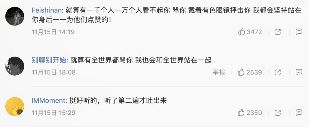 就算有一万个人看不起你,骂你,抨击你,我都会坚持的为他们点赞的。 就算全世界都骂你,我也会和全世界站在一起。 没必要跟风说不好听,我觉得不好听。