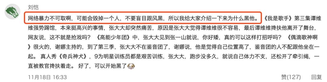 首先强调一下,网络暴力不可取,盲目的黑一个人是不对的。