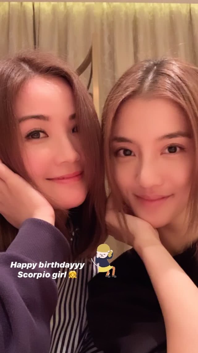 今天还给好友阿Sa庆祝生日,两位女神合体自拍照来看,吴千语对着镜头甜笑,心情大好!