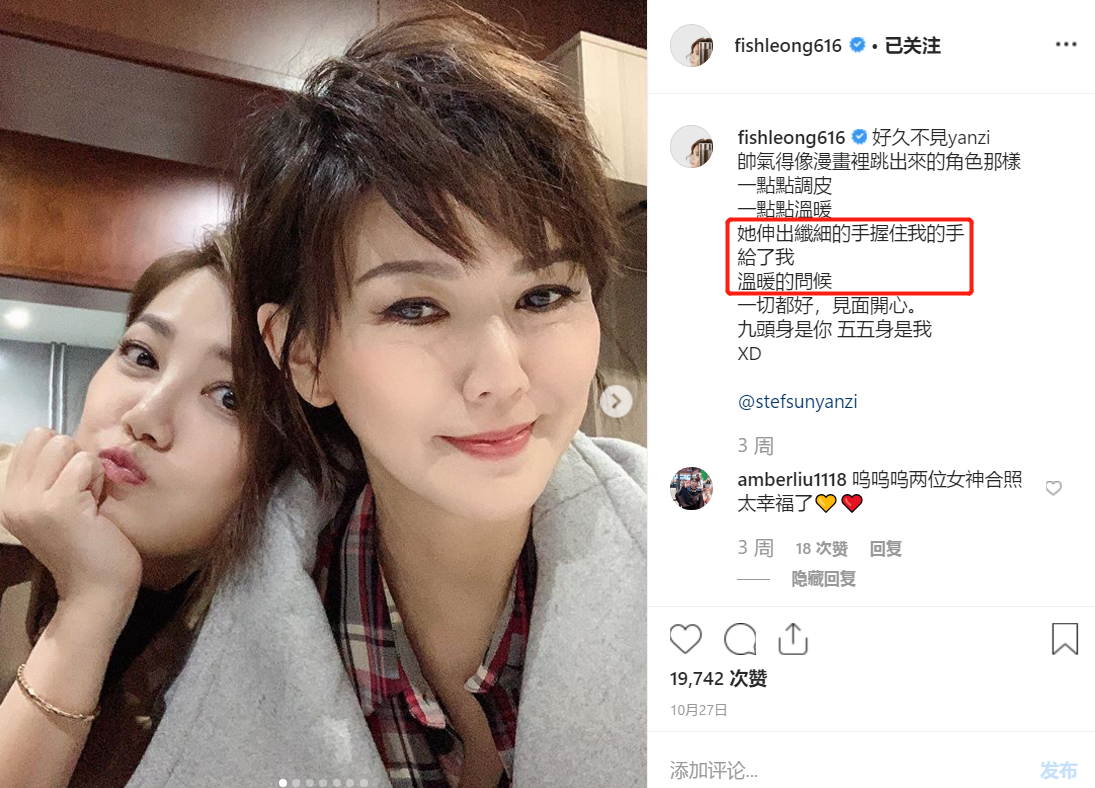 梁静茹此前也晒出了和孙燕姿的合影,并表示:“她伸出纤细的手握住我的手,给了我温暖的问候”,两人对着镜头不断搞怪自拍,很是欢乐。