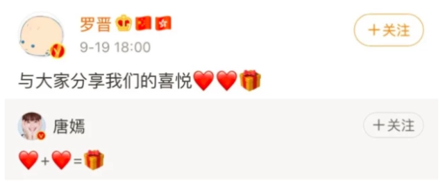 9月19日,唐嫣与罗晋一同发文官宣喜事,与大家分享二人将有小宝宝的喜悦——
