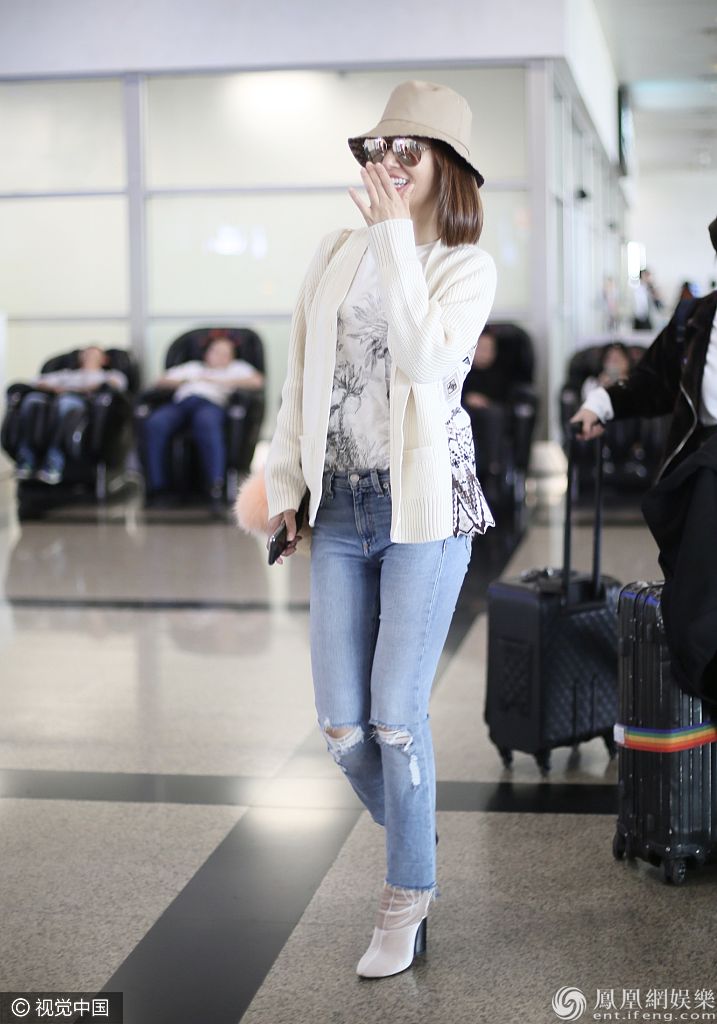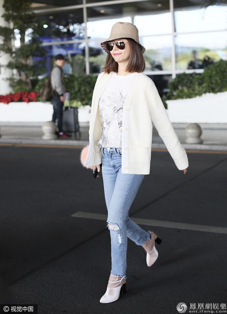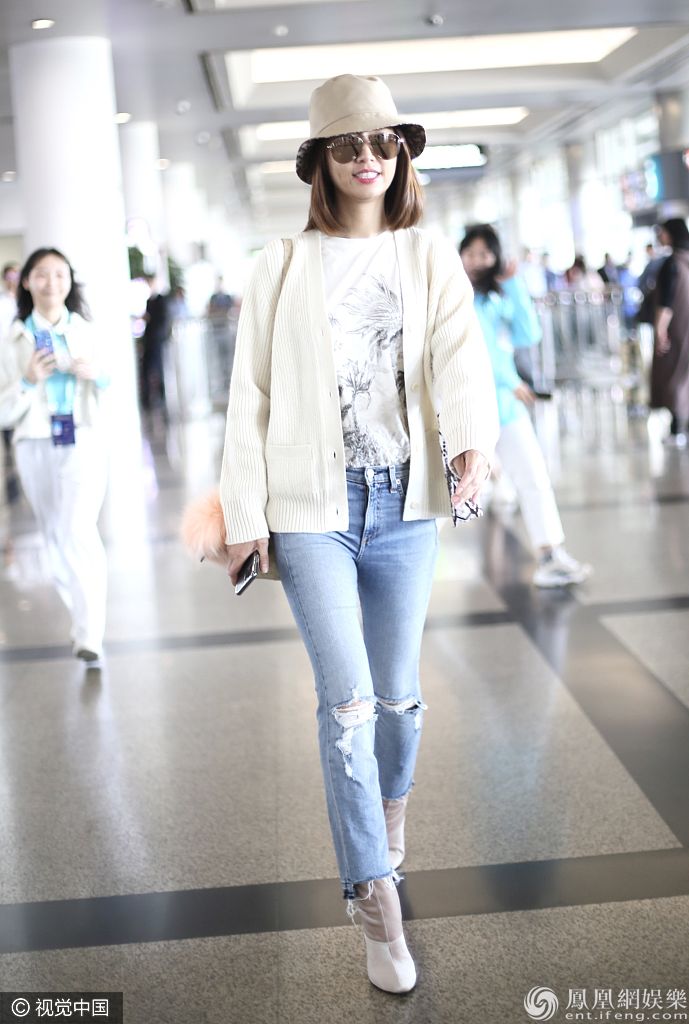 林心如装扮休闲。 图片来源:视觉中国/视觉中国