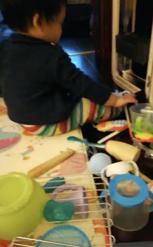 张歆艺在今年的情人节生大下了一个可爱的大胖小子,一眨眼的功夫,小情人都已经九个月大了,而且十分调皮,家里消毒柜里的碗筷勺子奶嘴奶瓶……全部都是他的玩具,一个人都玩得不亦乐
