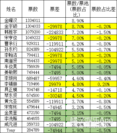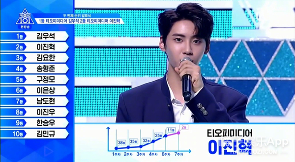 开局就是第1名的金敏圭,基本上在前5名的位置,结果总决赛没有出道: