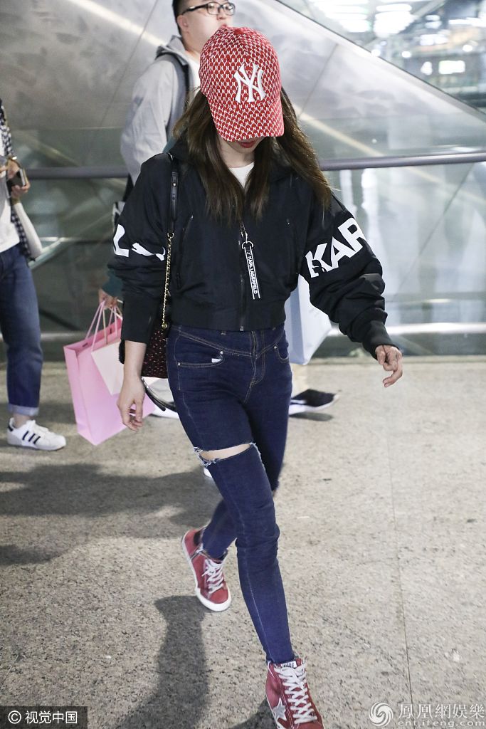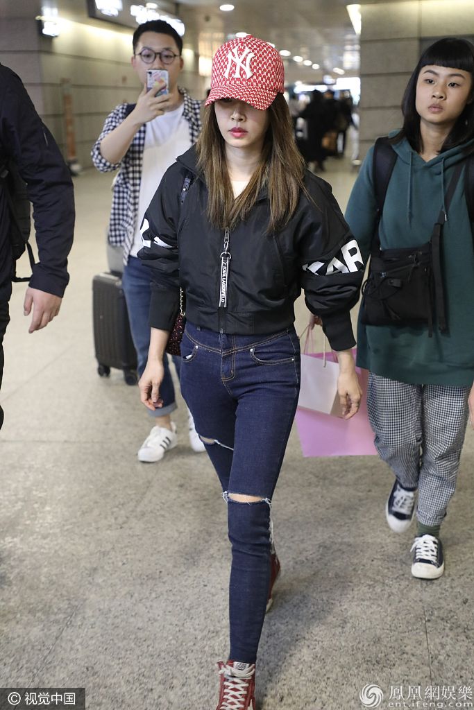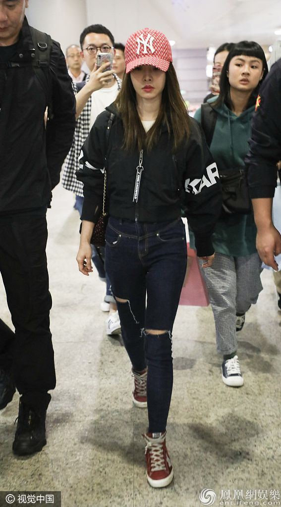 2019年11月2日,上海,蔡依林现身机场。蔡依林和王俊凯演唱会破次壁合作后首现身,穿夹克配破洞牛仔潮范儿十足。 图片来源:elyn/视觉