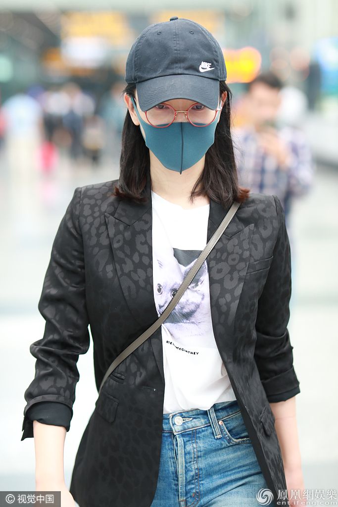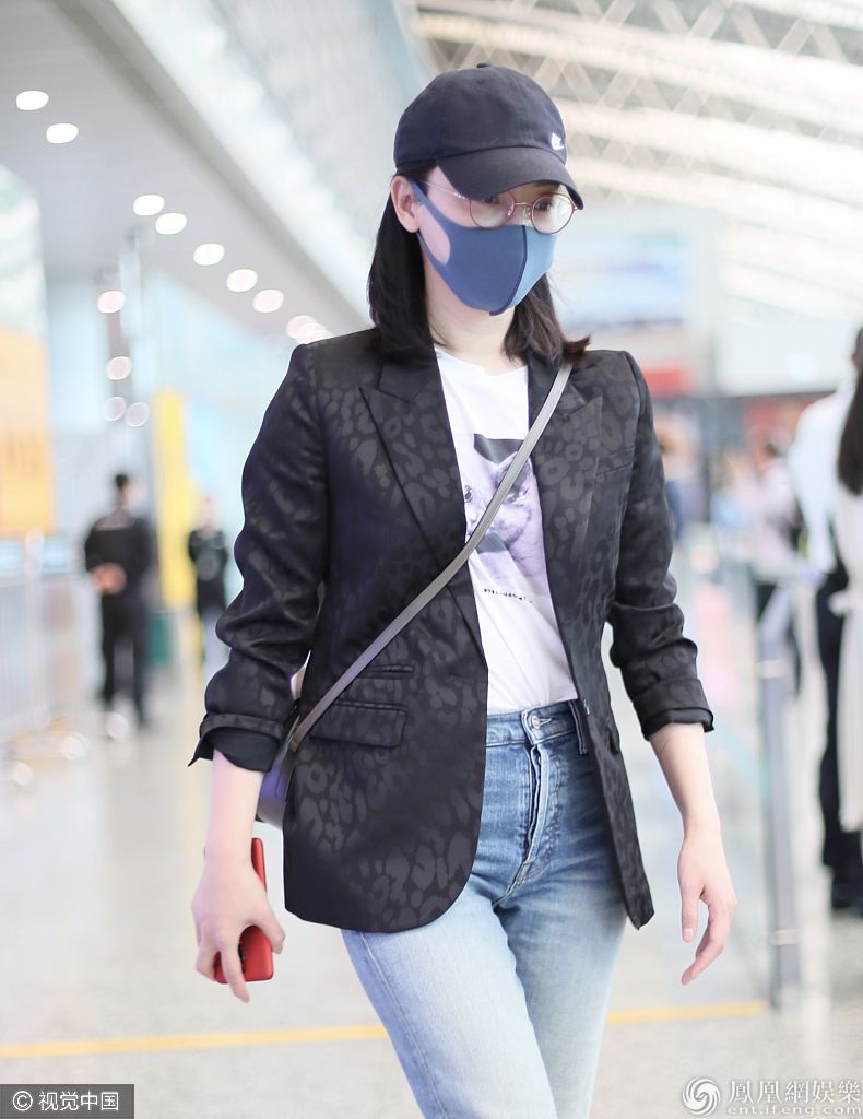2019年11月2日,广州,陈数现身机场,她戴着帽子口罩,穿着黑色印花西装下身搭浅色牛仔裤,整体造型攻气十足!陈数素颜亮相皮肤白嫩,看起来起色超好! 图片来源:签约供稿人/视觉
