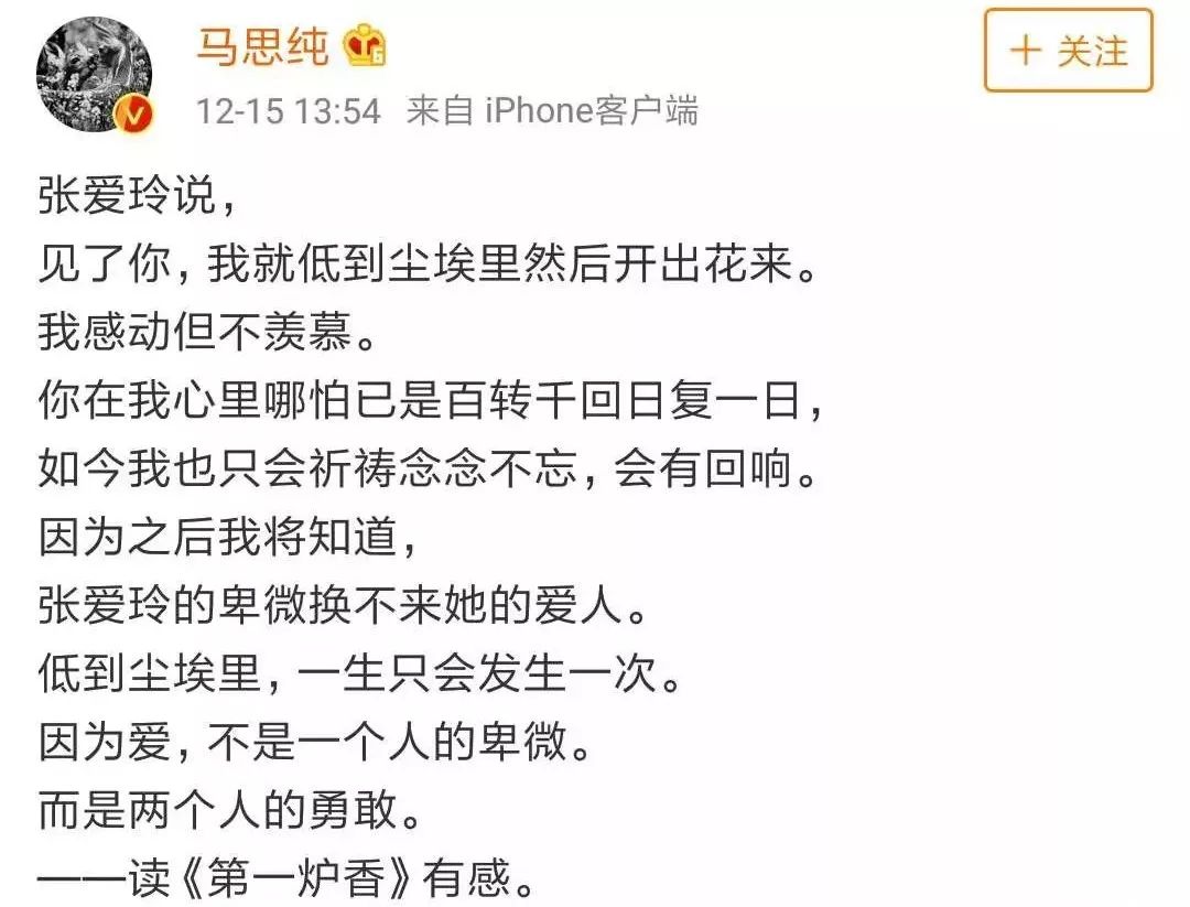 于是,有了用鸡汤体温暖张爱玲的马思纯。