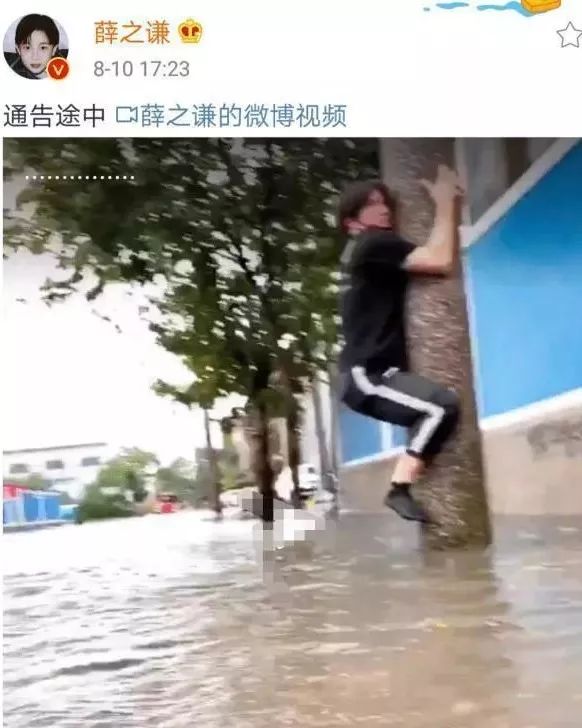 今年8月,台风利奇马肆虐,仅浙江省就有32人死亡,经济损失157.5亿,面对这般天灾人祸,段子手薛用自己的视角蹭了一下热点,很卖力地顶着台风爬上电线杆子摆拍了一下。