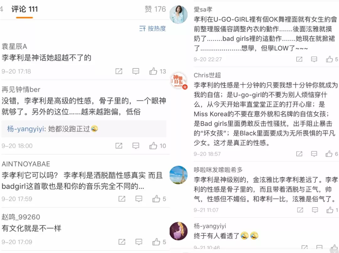 所以同样的舞蹈动作,李孝利做是气场,金泫雅就是低俗。