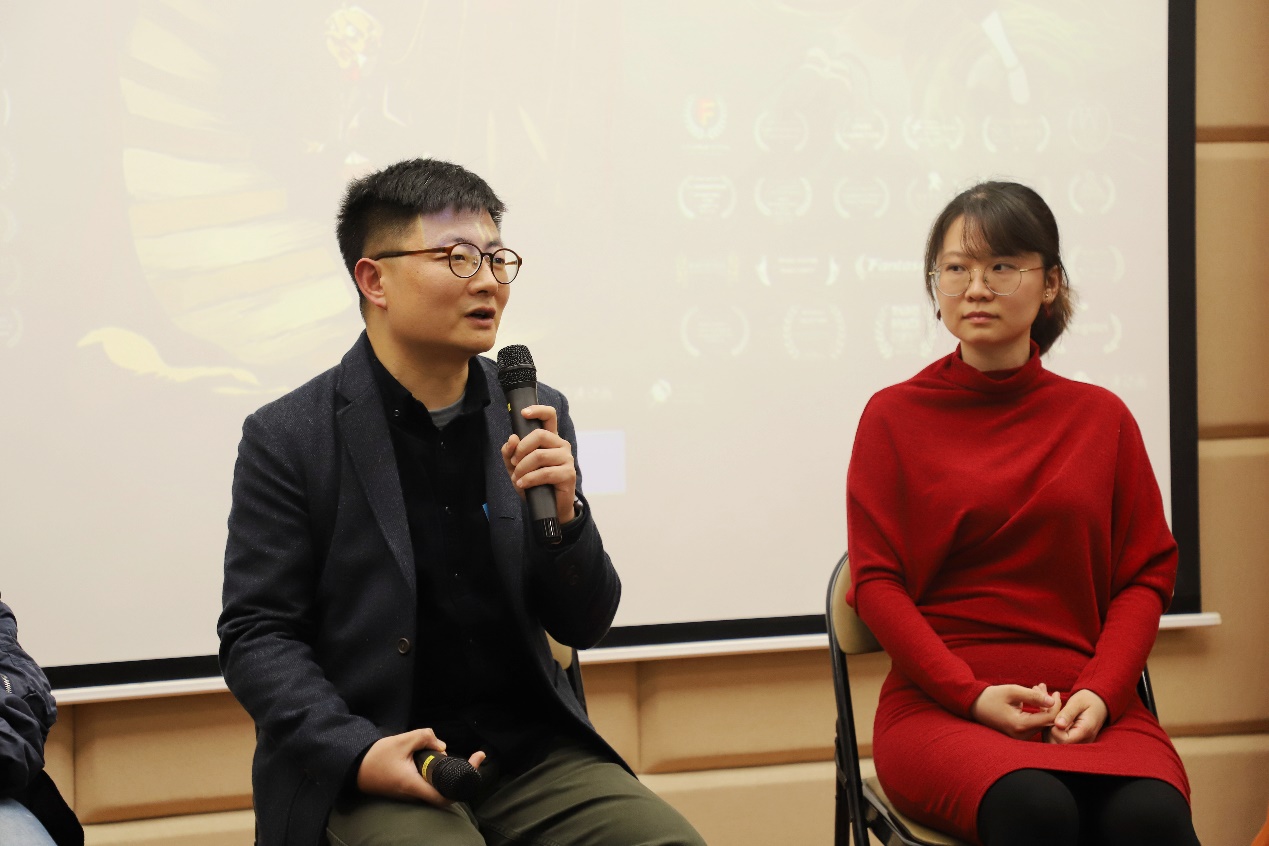 展映结束后空速动漫主创团队与现场观众进行了交流,观众提问活跃。有向导演取经的,也有问导演关于制作、美术设计、故事、音乐等相关问题的,三位导演也一一和大家分享了自己做动画的经验和感受。
