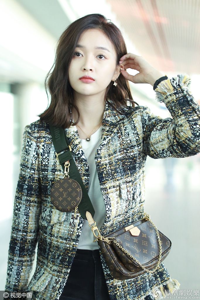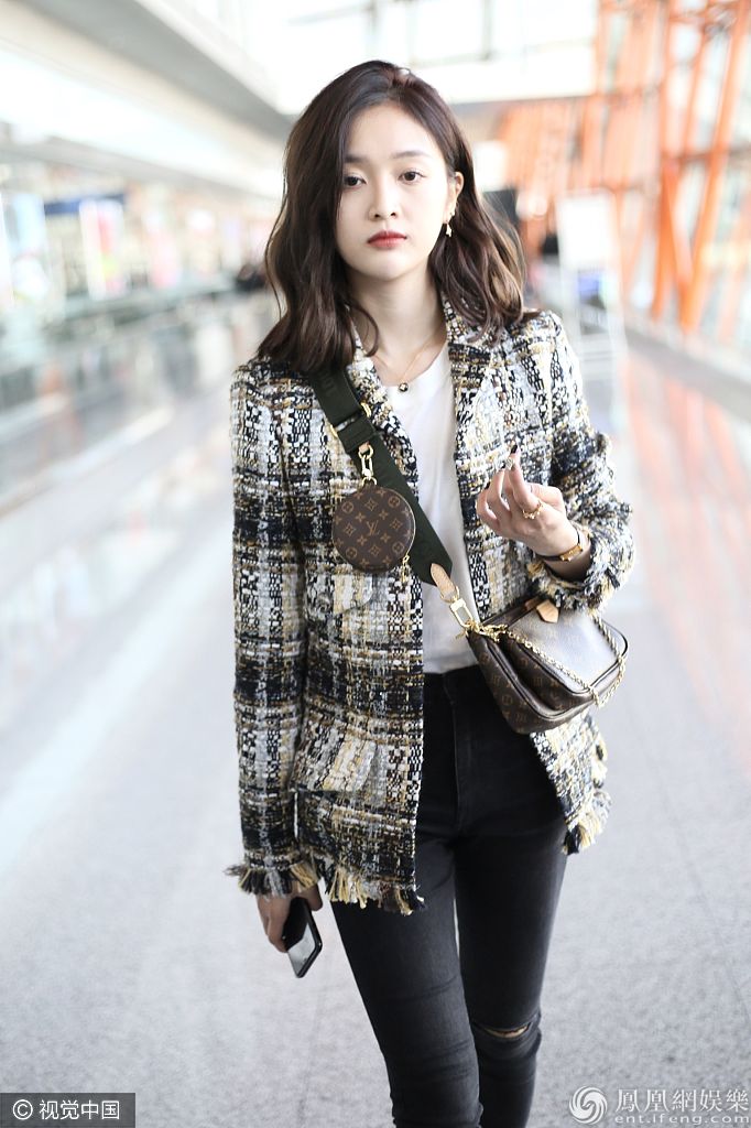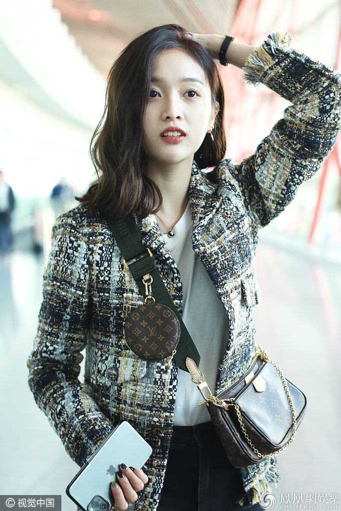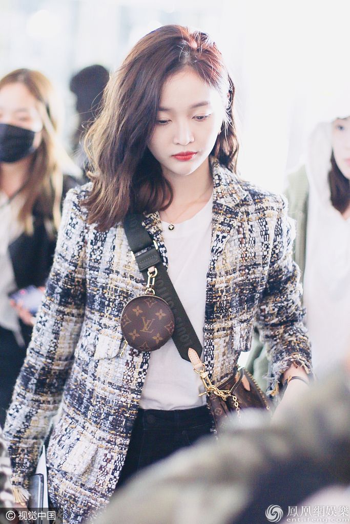 2019年10月29日,北京,吴宣仪现身机场。她穿小西装和黑裤,楚楚动人明艳迷人,胸前迷你包吸睛。 图片来源:ALO/视觉