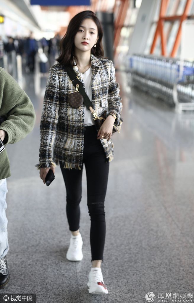吴宣仪穿小香风外套亮相机场。 图片来源:1314/视觉中国