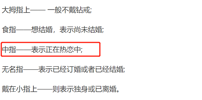 最抢镜的要属唐菀右手中指上的钻戒了,鸽子蛋大小闪闪发亮。据悉按照国际惯例和中国习俗,右手中指上戴戒指代表着正在热恋中,那么唐菀是否也有新恋情了呢?