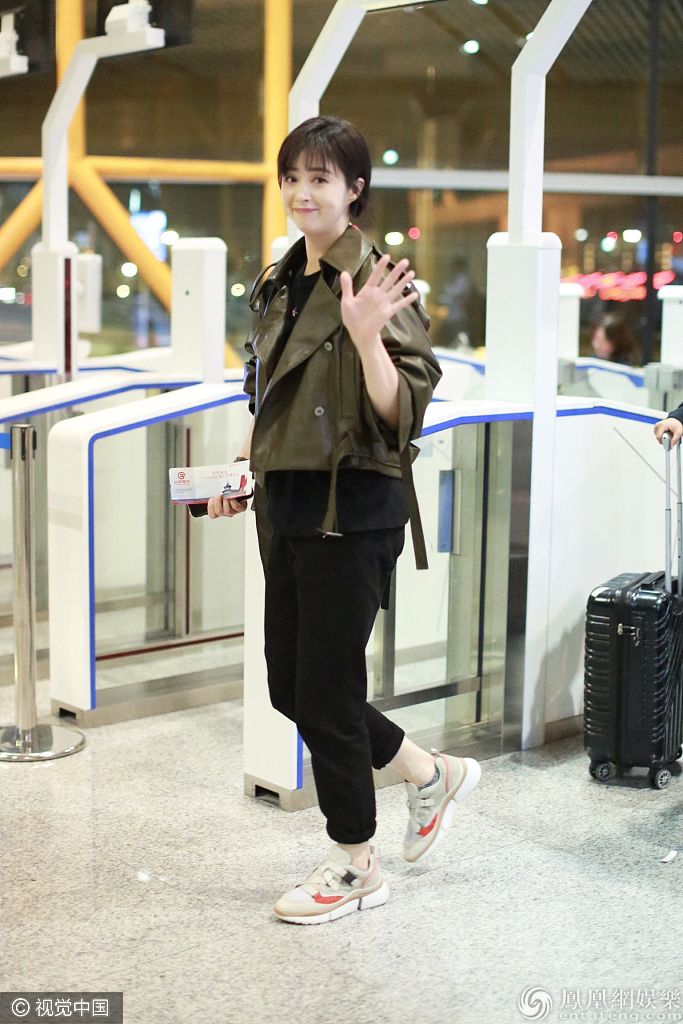 蒋欣把裤脚的地方心机地挽起裤腿,秀出纤细脚踝,更显得整个人纤瘦了。 图片来源:c/视觉中国