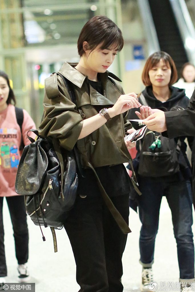 蒋欣单间挎包单手插兜甜笑十分开心,还主动给粉丝签名十分暖心。 图片来源:ALO/视觉中国