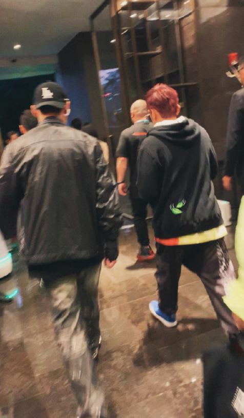 在工作人员的簇拥下由近及远走离,不看身材和大脸的话,确实有几分帅气。