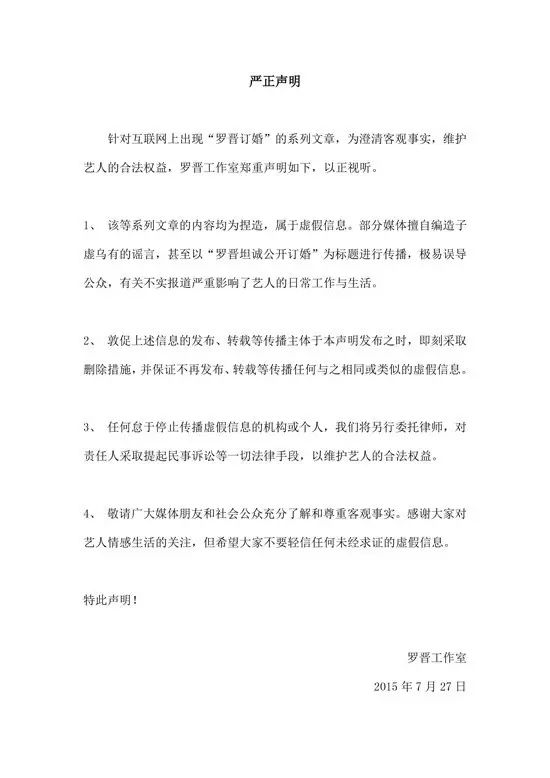 罗晋为了这段恋情还发声明要告媒体造谣。