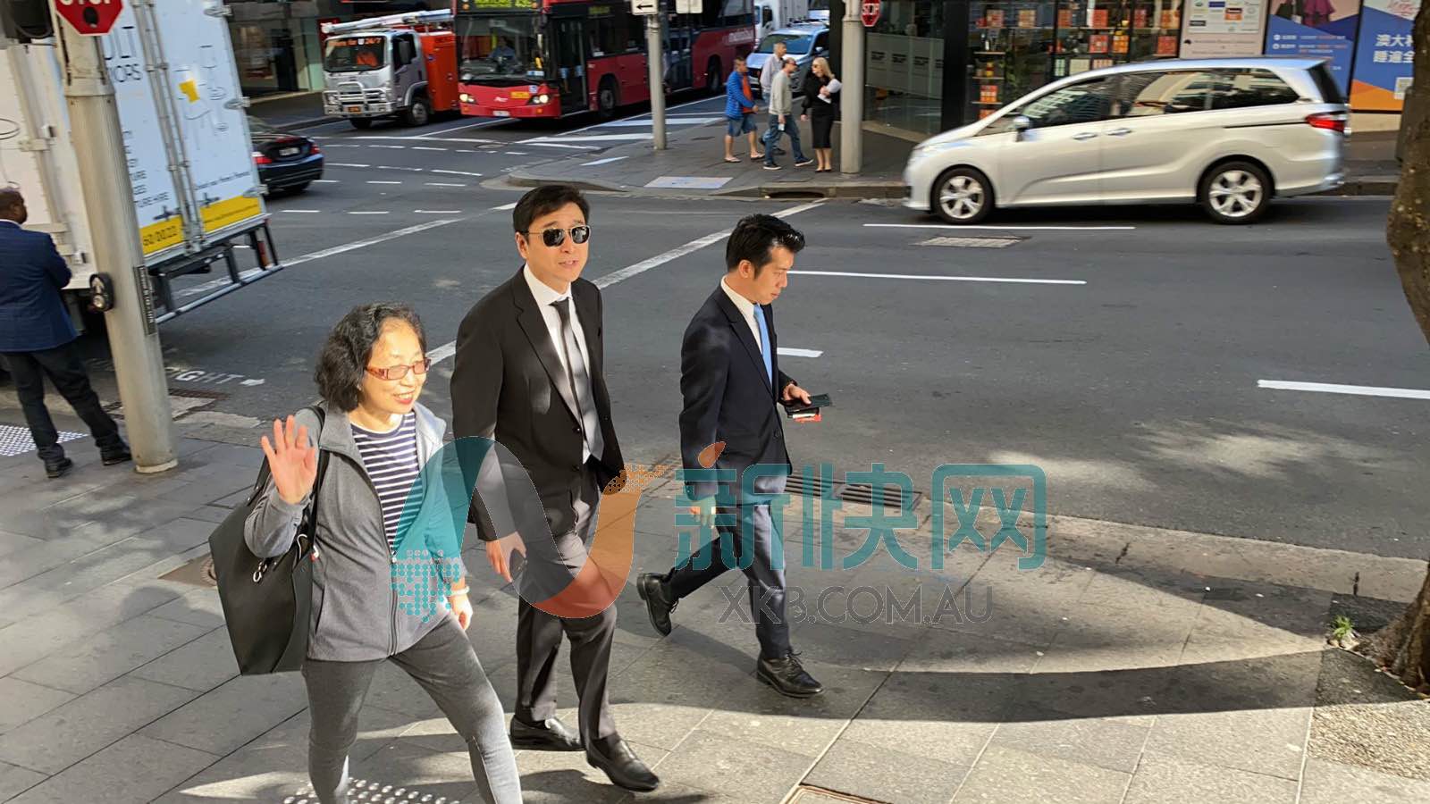 王晶和母亲以及事务律师走进法庭,王晶妈妈特意像镜头打招呼,微笑向记者说早。
