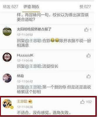 当时出演《青云志》里的陆雪琪,就是江湖第一美女,但她因为这个角色被喷惨了…就连娱乐圈纪检委思聪也评价过杨紫的演技。“不适合,没有感觉。选角失败。”
