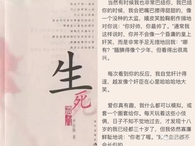 当年,伊能静还特别为庾澄庆写过一本书,名字叫《生死遗言》,里面的文字也是她对庾澄庆满满的崇拜与爱: