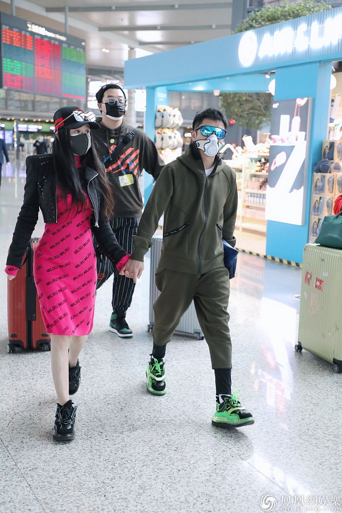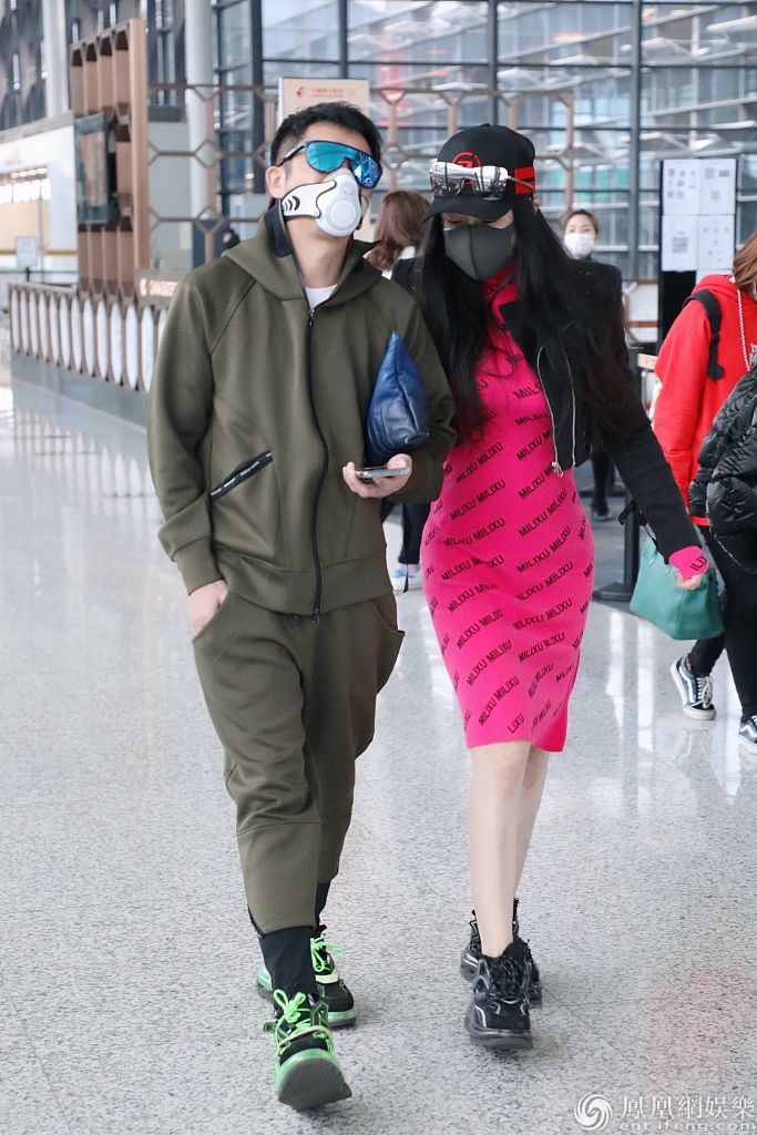 2020年3月12日,上海,邹市明冉莹颖夫妇现身机场。邹市明身穿军绿色运动装造型帅气;冉莹颖身穿粉色字母连衣裙大秀纤腰长腿,身材十分完美。邹市明一路紧牵娇妻小手,两人一同快走很是恩