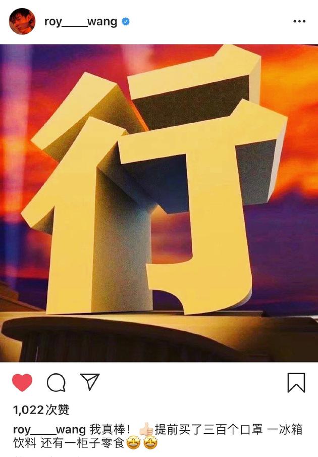 3月12日,王源在个人社交网站更新动态,他先是发文称:“该来的还是会来,还是逃不过网课”,随后他再次发文:“我真棒!提前买了三百个口罩,一冰箱饮料,还有一柜子零食”。
