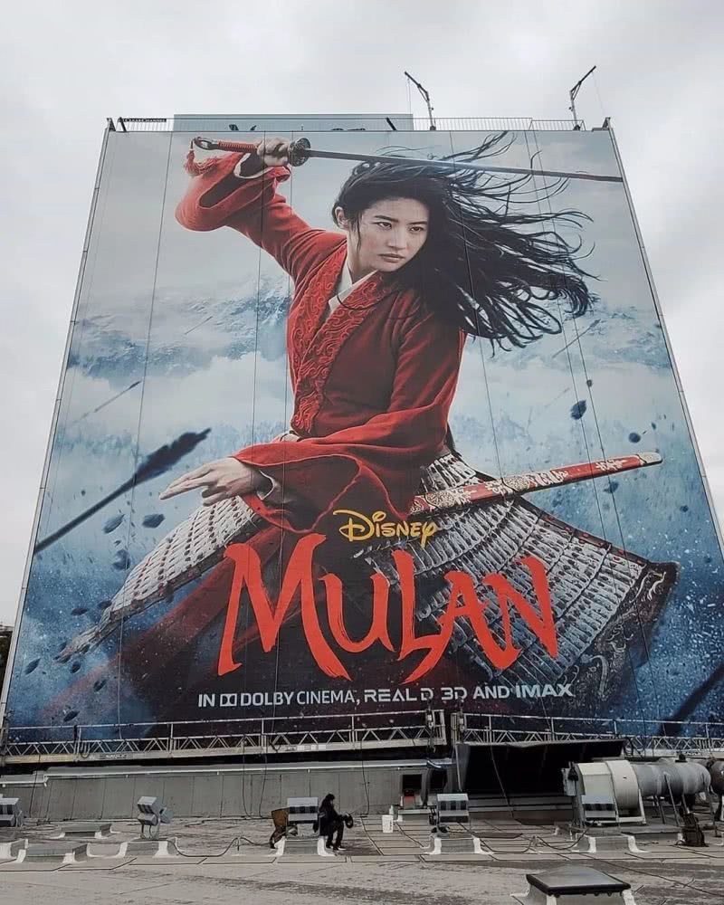 毕竟家里有钱,巨型海报也安排得妥妥当当,方圆十里都能看到花木兰执剑杀敌的英姿。