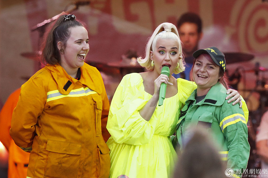 当地时间2020年3月11日,澳大利亚,凯蒂·佩里(Katy Perry)为在维多利亚州遭受毁灭性森林大火影响的消防员和社区举办了免费的“扑灭”音乐
