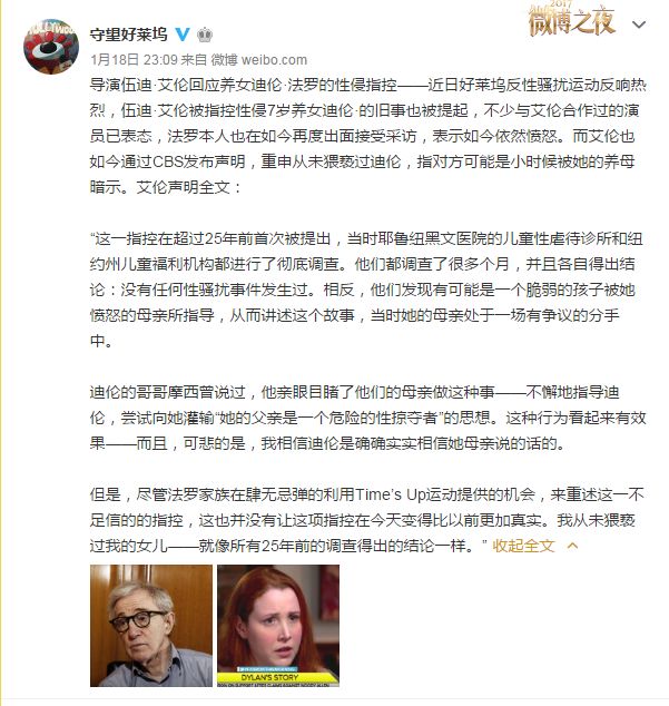同时,她也不是盲从的站队者,没有在面对媒体和公众时积极否认伍迪·艾伦的一切,反而是在提醒大众要看到司法系统的重要性。